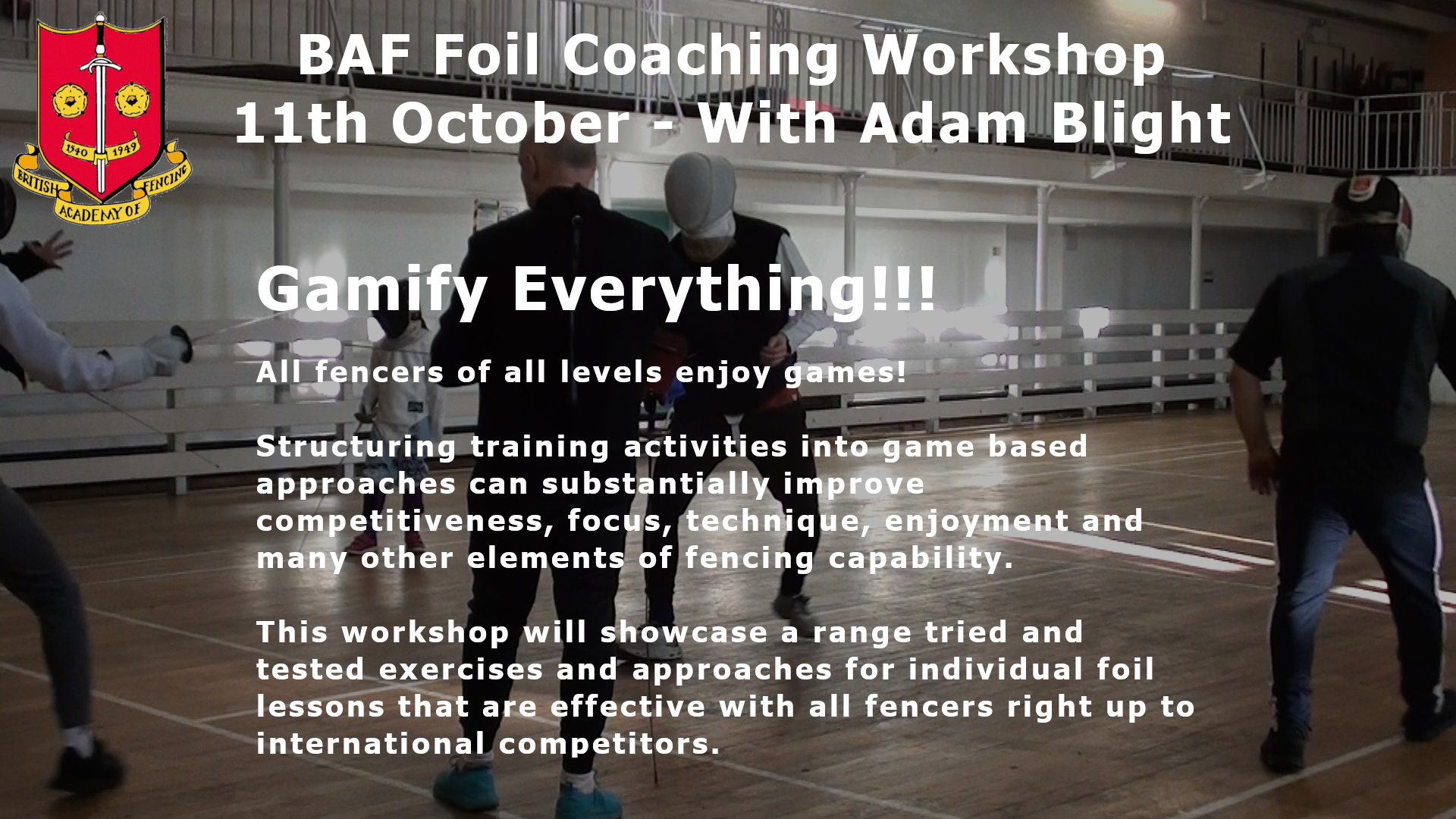 Foil Coaching Workshop with Adam Blight – Saturday 11th October